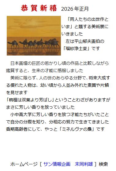 PDF![]() 【仕事】Diplomatic and Negotiarion 客先常駐16年+事業経営19年=外交交渉35年 ∴空疎な話題じゃあ、人は動かない! 思えば:いつも忘れ得ぬ人が、隣りにいた! 平静心:愚鈍なので、事変に慌てないで対処した 実践家:他者の言い分が正当か判断して言動した 教養人:幼少から道理あり、歴史.政治.人間を学習した 中庸心:家族を最優先し、智.情.義.利のバランス 草枕 自力で起業し人を雇い給料を払う男女達と付合うと… ✔組織の中に収まらない気質をもっている 椿三十郎 ✔動物園の檻の中で吠えてるライオンじゃあない ✔ビジネスエリートの新論語 司馬遼太郎 |